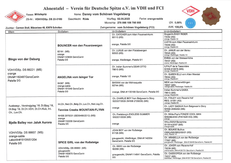 AHORNHAIN WT: 21.05.2017 - PL 0/0 - Größe 37,5 cm - Laboklin-Farbgenetik vorhanden - Orange (4) - Auslesegruppe - Dt.Champ. VDH - Dt.Champ. VfDSp. - Luxembourg. Champ. - Internationaler Champion - NL-Champ. - Vereinssieger 2025 Besitzer: Andrea zum Hoff Wittenhausweg 30 D - 40882 Ratingen Mobil: +49 (0) 172 - 3 51 85 41 E-Mail: → azumhoff@aol.com
