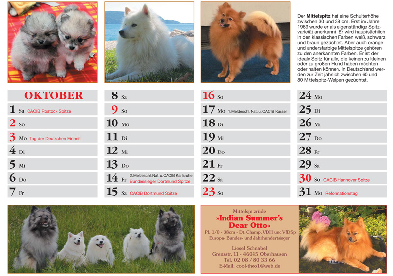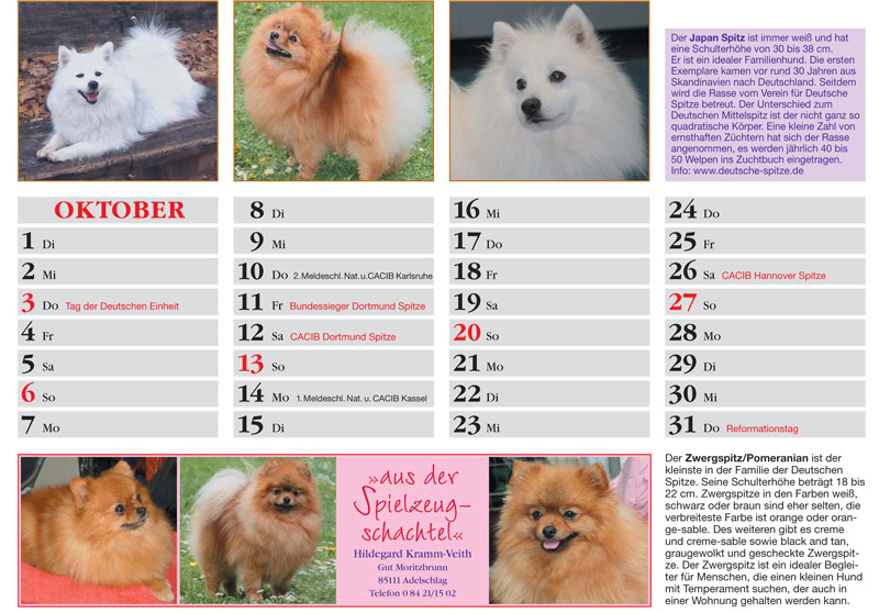 100 neue Spitzbilder sind darin enthalten, sowie alle deutschen Ausstellungstermine und Meldeschlüsse sind im Kalendarium aufgeführt. Weitere Ansichten des Kalenders 2026 finden Sie weiter unten.